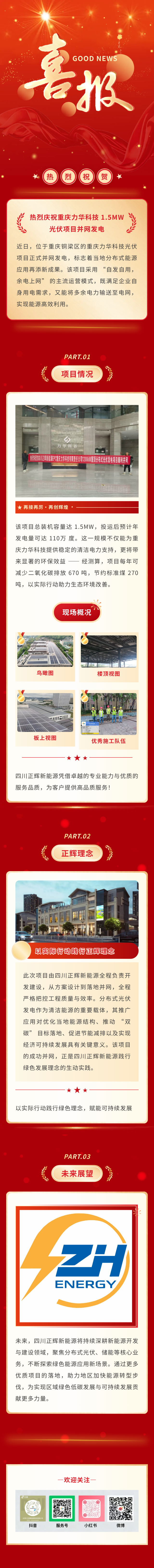 1.5MW光伏項目在重慶力華科技并網發(fā)電,正輝再添綠色新動能